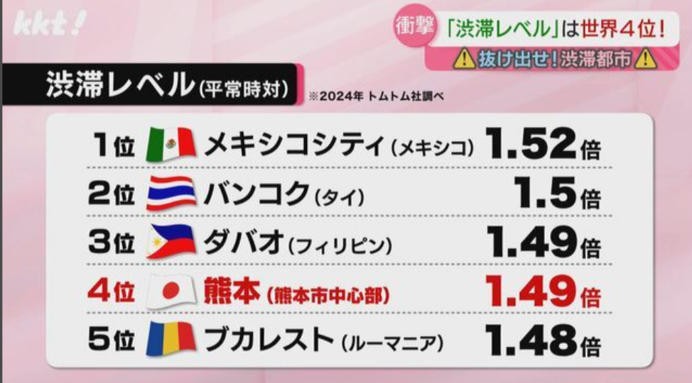 熊本も中々やるやん【世界レベルの渋滞…】「熊本の渋滞」1年前と比べると? 同じ時刻・道で検証してみた