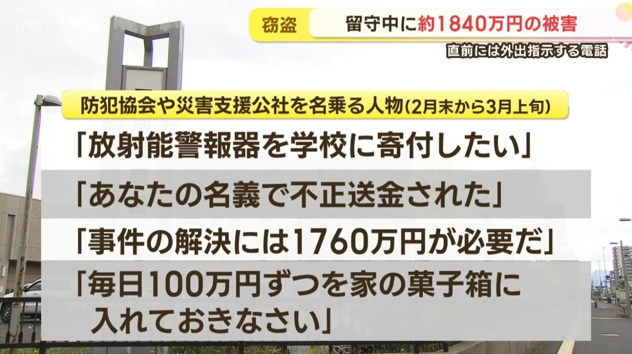 「毎日100万円ずつ菓子箱にいれておきなさい」 70代女性の家に空き巣が入り現金1840万円盗まれる
