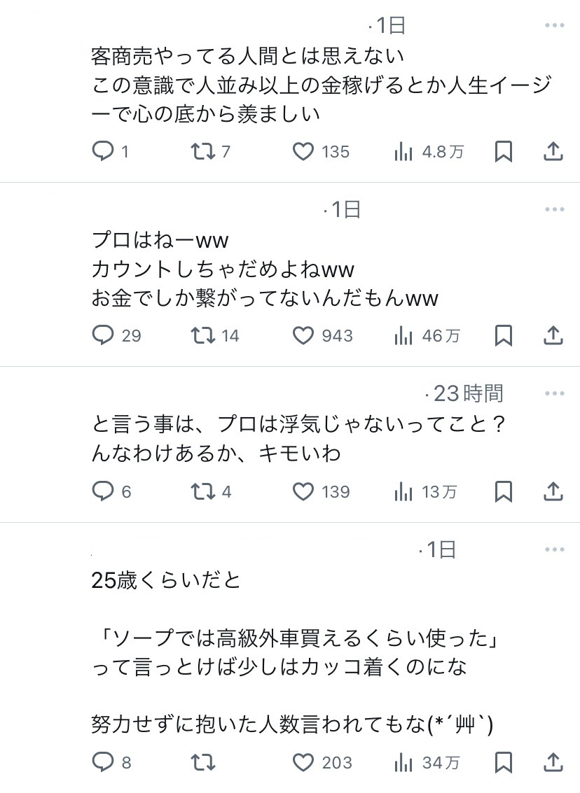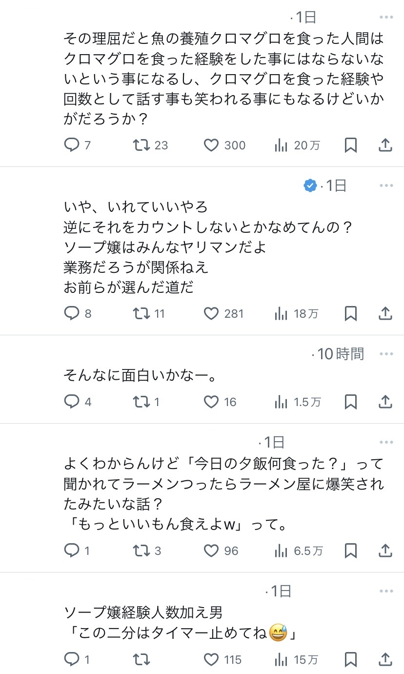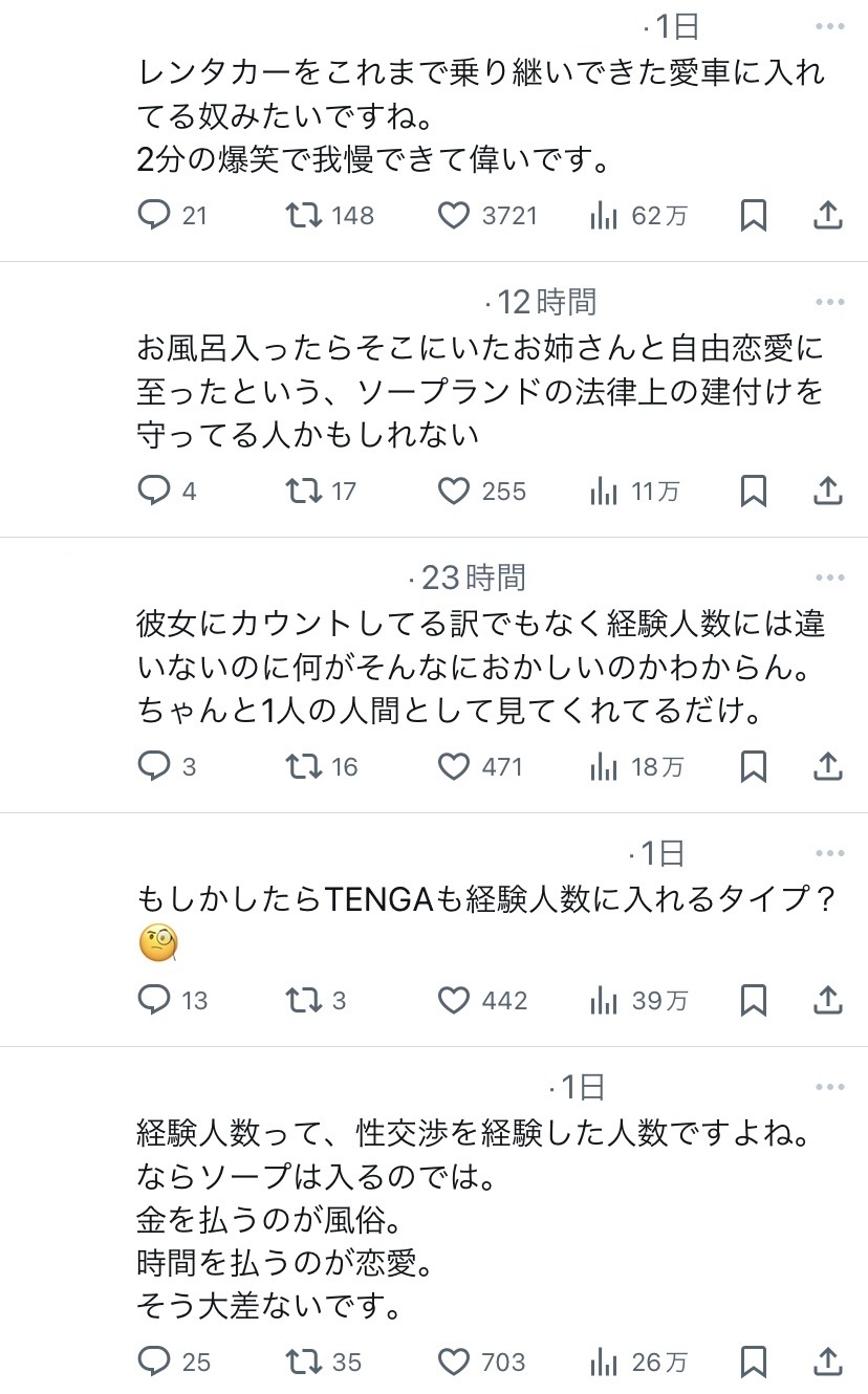 ソープ嬢を経験人数にカウントしてる25歳来て腹の底から笑ってしまった