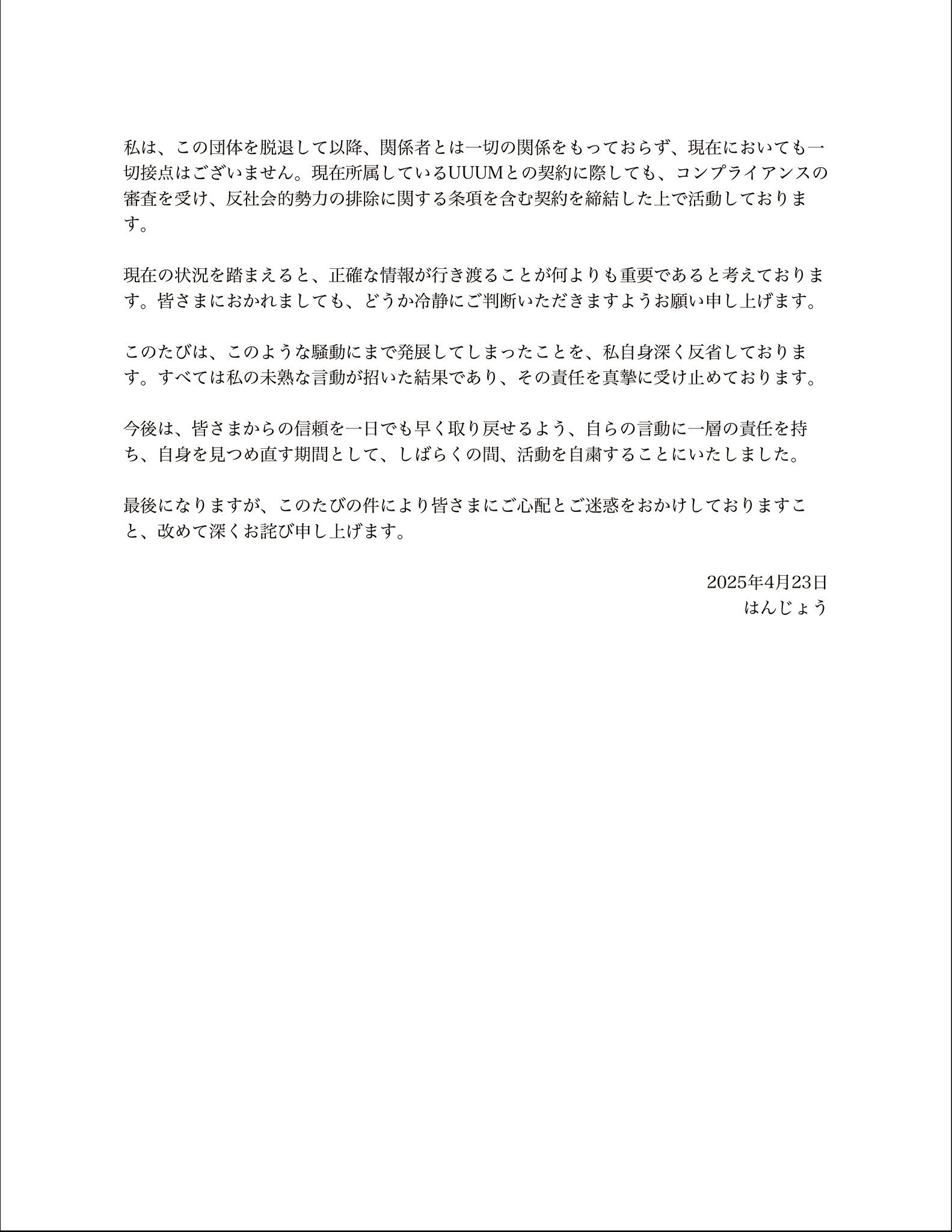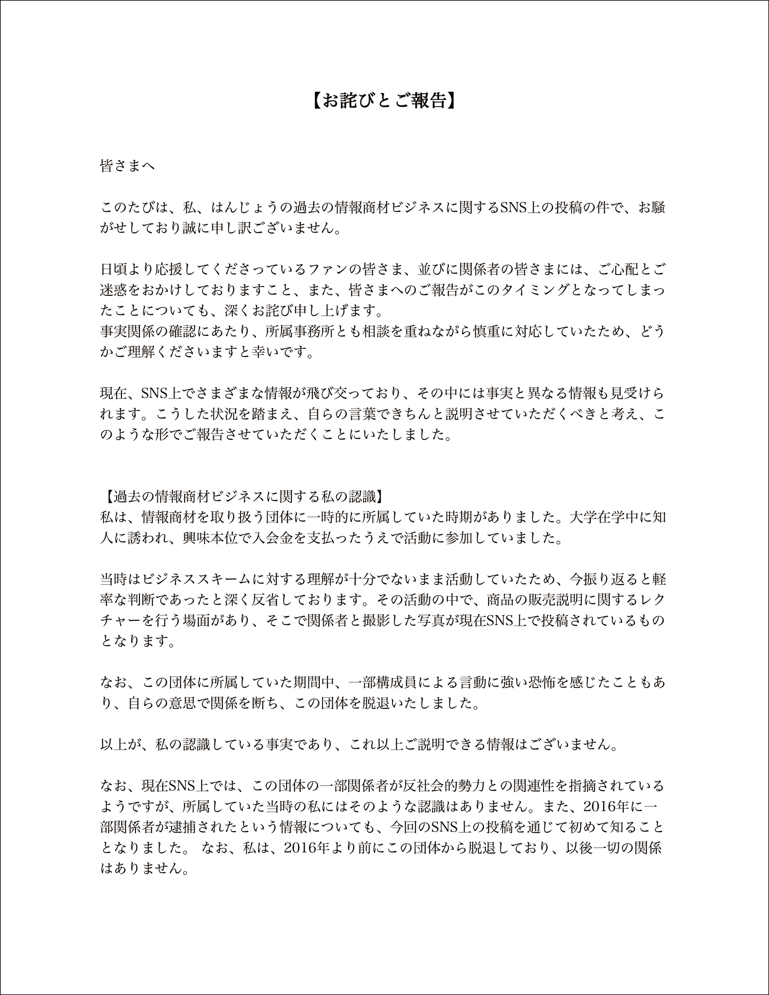 【皆様へお詫びとご報告】 pic.twitter.com/P4nb7XsYtN