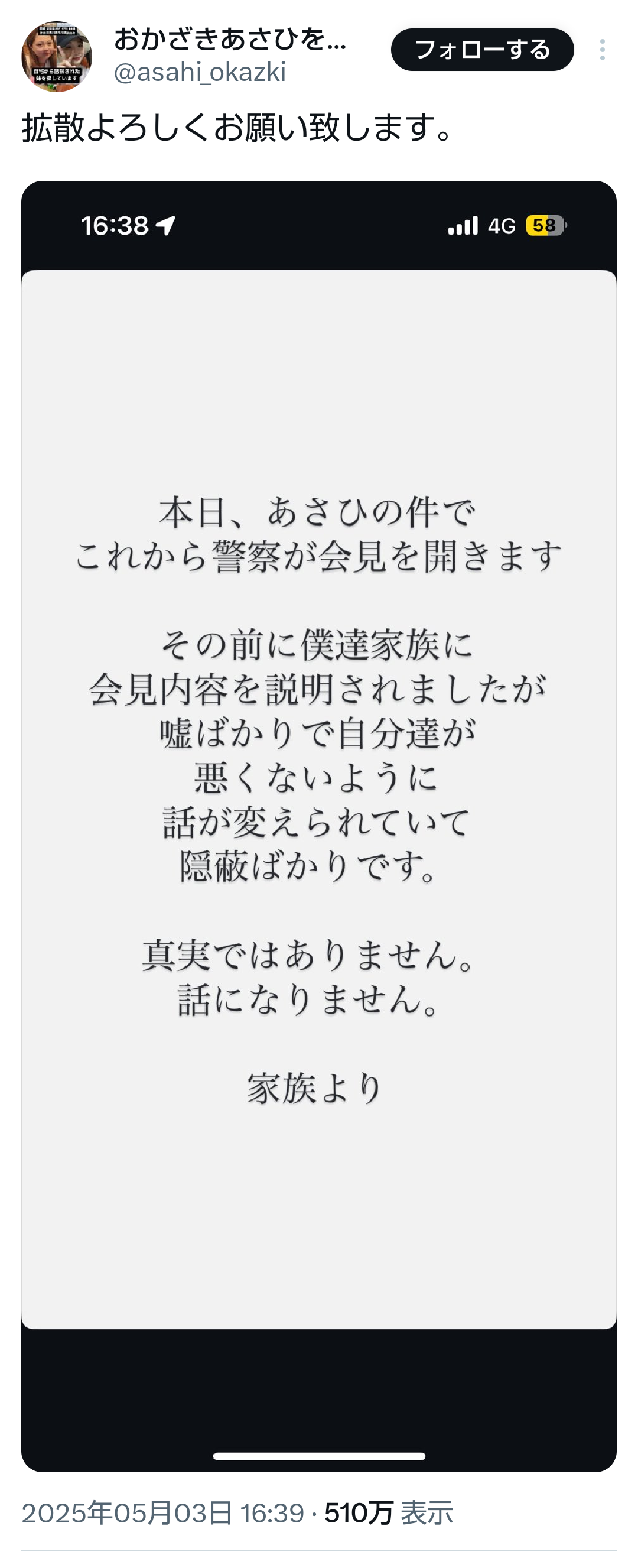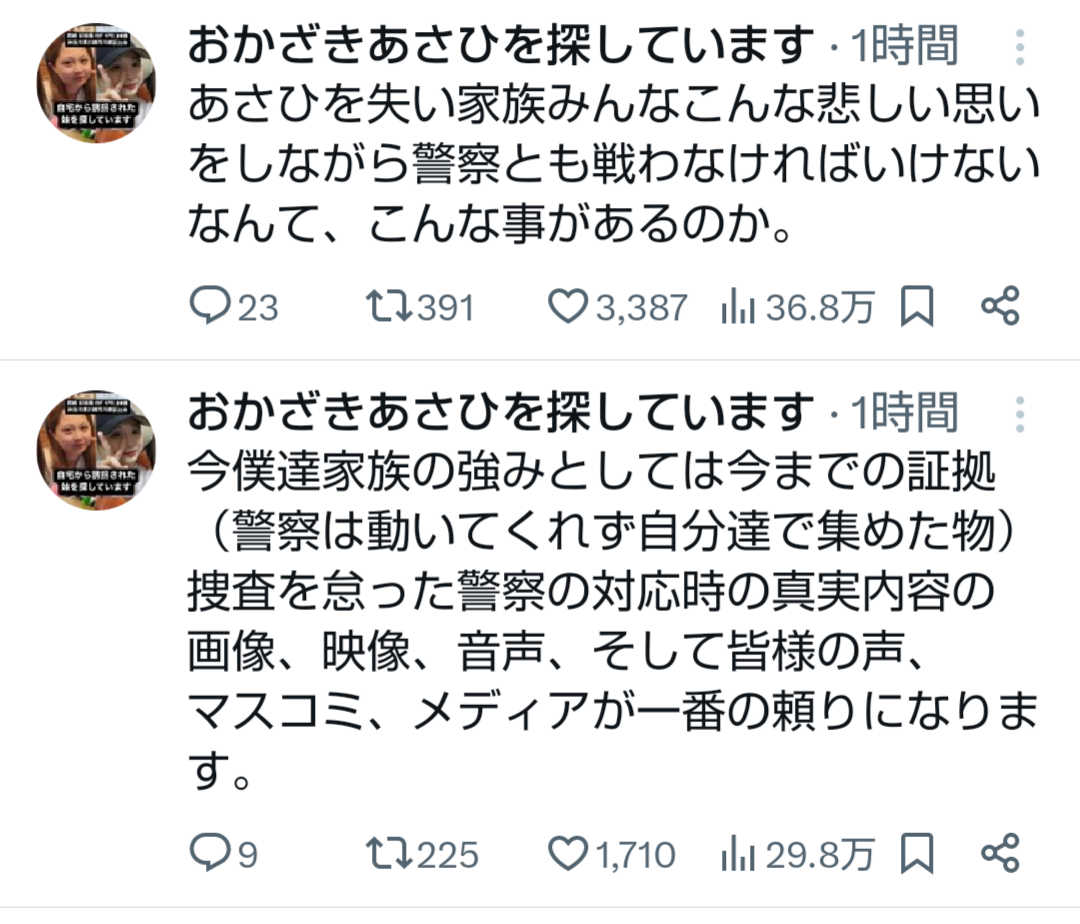 岡崎さんの兄から連絡がありました