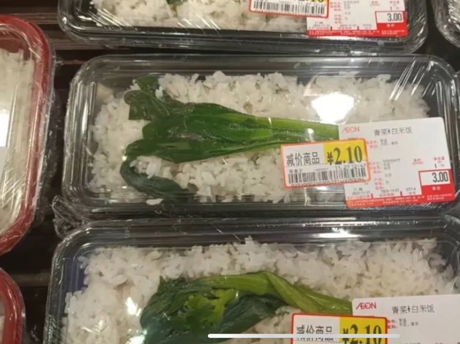 白米の上に炒めた青菜が一本乗っただけの3元弁当(約60円)
