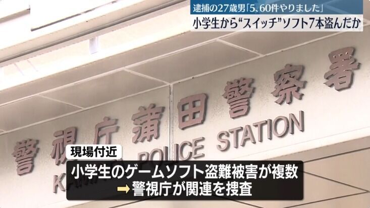 小学生のバッグから家庭用ゲーム機「ニンテンドースイッチ」のソフト7本を盗んだとして、警視庁蒲田署は29日までに、窃盗容疑で、住所不詳の自称飲食店従業員(27)を逮捕しました。— 時事ドットコム(時事通信ニュース) (@jijicom) 2025年5月29日