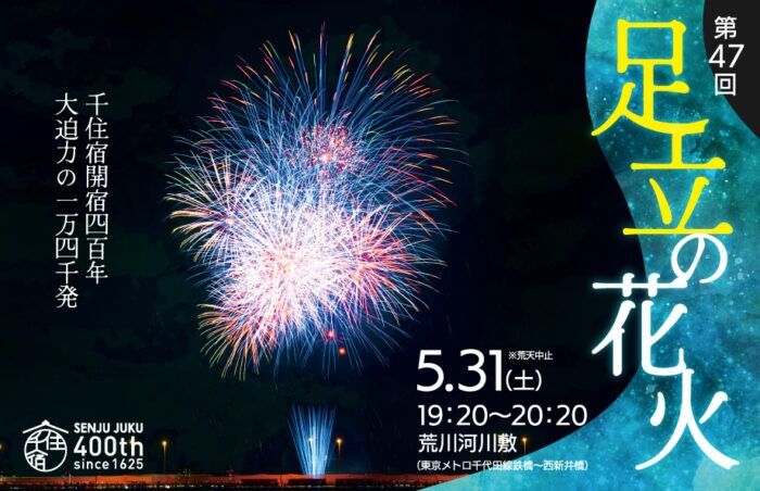 本日(5月31日)、開催を予定しておりました「第47回足立の花火」は、強風により花火の燃えかすが民家に落下する可能性が高いため中止いたします。