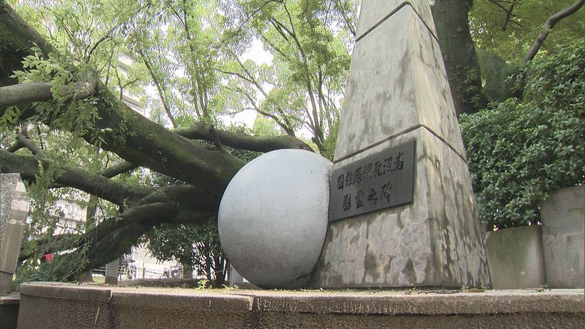 高さ約15メートルのエノキが根元から倒れ、近くにある国鉄原爆死没者の慰霊碑の後ろの塀が一部壊れました。