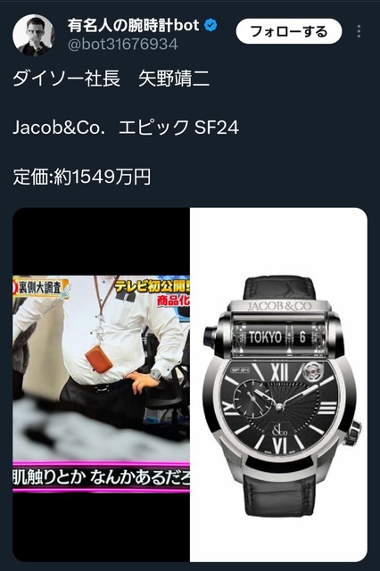 — 有名人の腕時計bot (@bot31676934) May 16, 2025