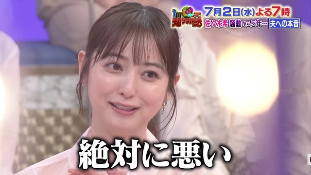 7/2放送の「1周回って知らない話」で佐々木希がテレビで初めて渡部の不倫騒動の話をするらしい…!!まだ予告でしかわからないけど経過観察中って感じなんだね…普通に放送気になる! pic.twitter.com/h1BVNT5dlu