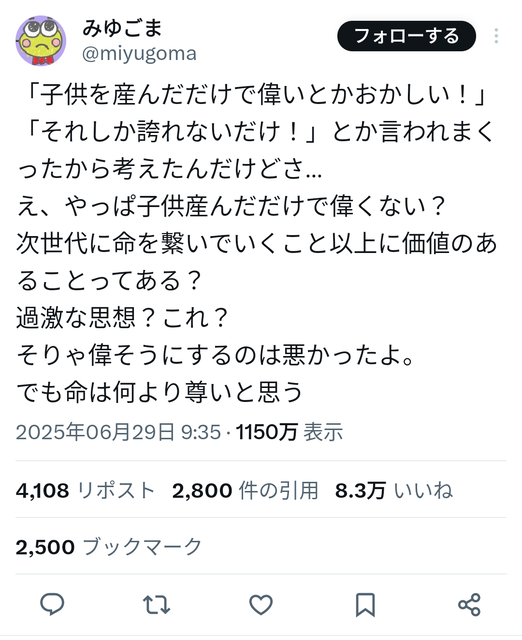 子供産むのは偉いけど、それでもなお産んだだけじゃんって言われまくったのにはそれなりの理由があると思うんよ