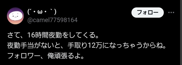 夜勤手当込みで手取り15万円wwwwwwwwwwwwwwwwwwwww