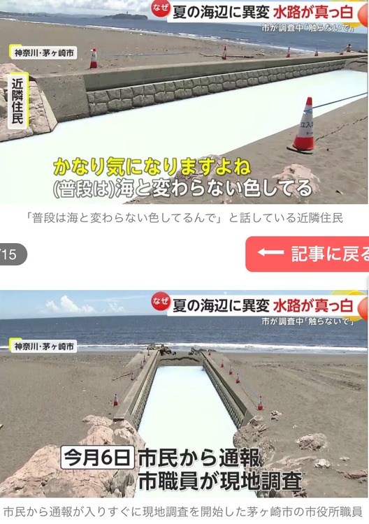 こわい【謎】「手を触れないで」茅ヶ崎の海辺に異変!水路が突然“真っ白”に…簡易調査で有害物質確認されずも注意呼びかけ 神奈川 #FNNプライムオンライン #イット https://t.co/ExUzrWYd9s