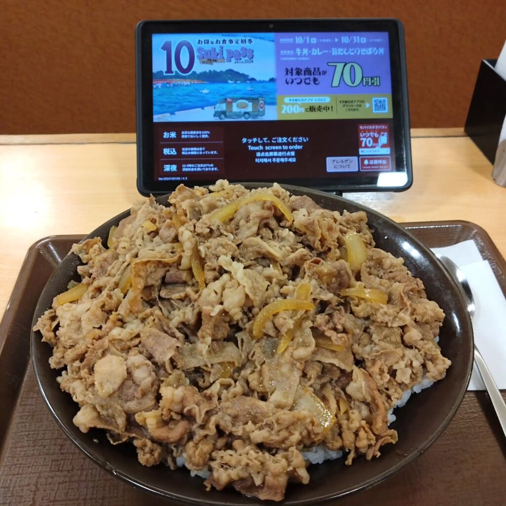 すき家のキング牛丼は、メガ盛り牛丼の約2倍の量で、牛肉が並盛の6倍、ご飯が並盛の2.5倍の量です。具体的には、牛肉510g、ご飯625gで、全体で1135gになります。