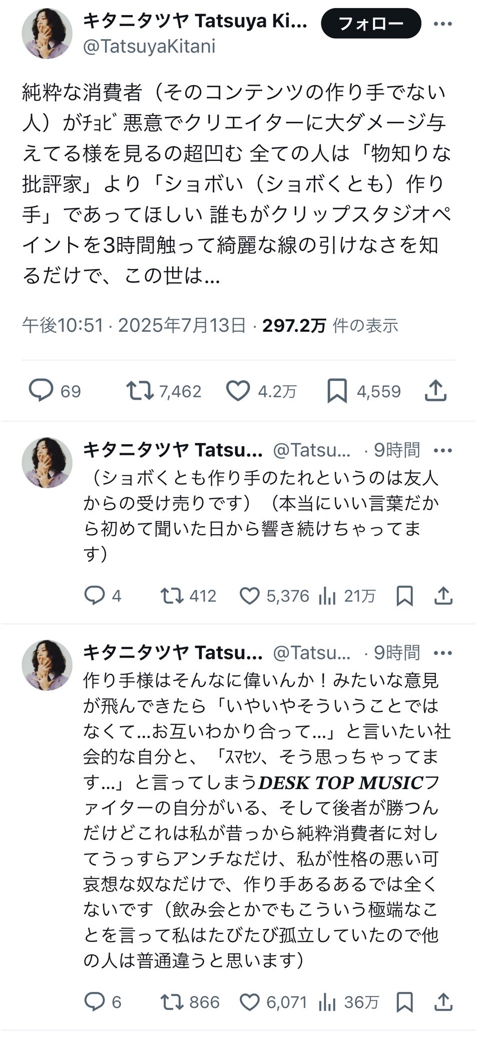 アンチなんて気にせずに自分の作品を支持してくれてるファンの方だけ向いとけばいいんよ