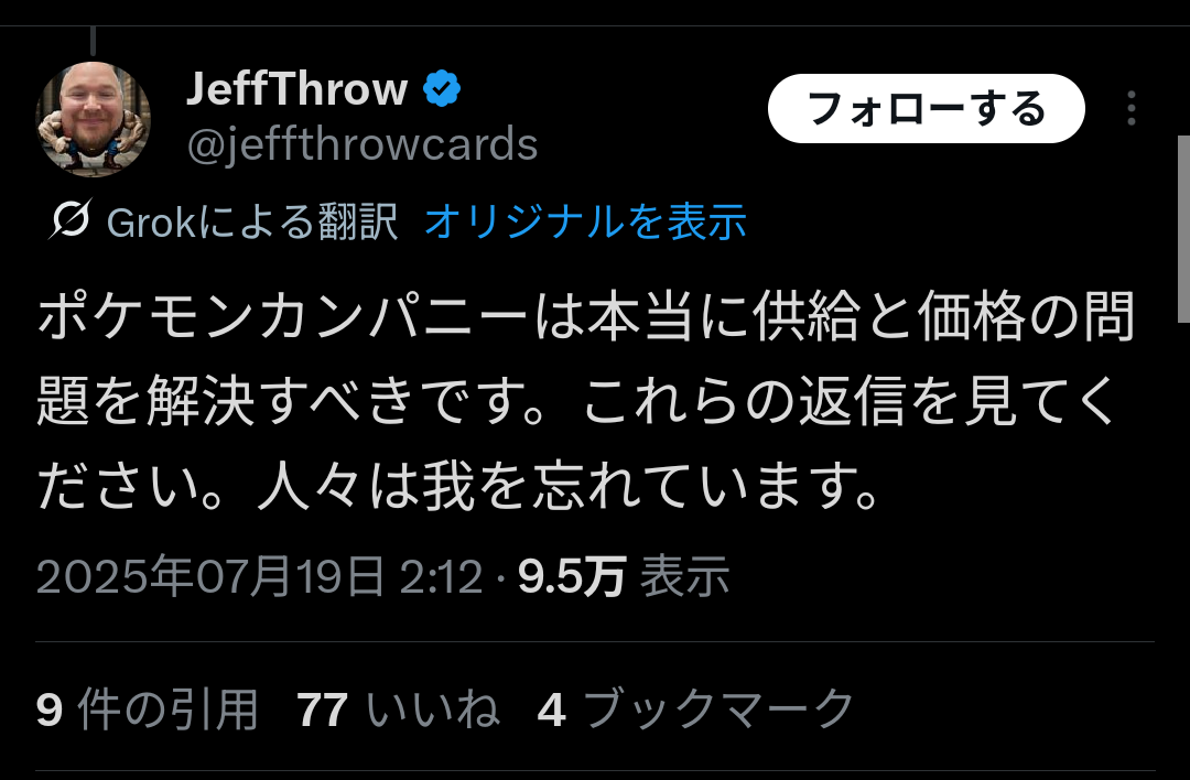 【悲報】ポケカ転売ヤー「ポケモンカンパニーは本当に供給と価格の問題を解決すべきです。」 →