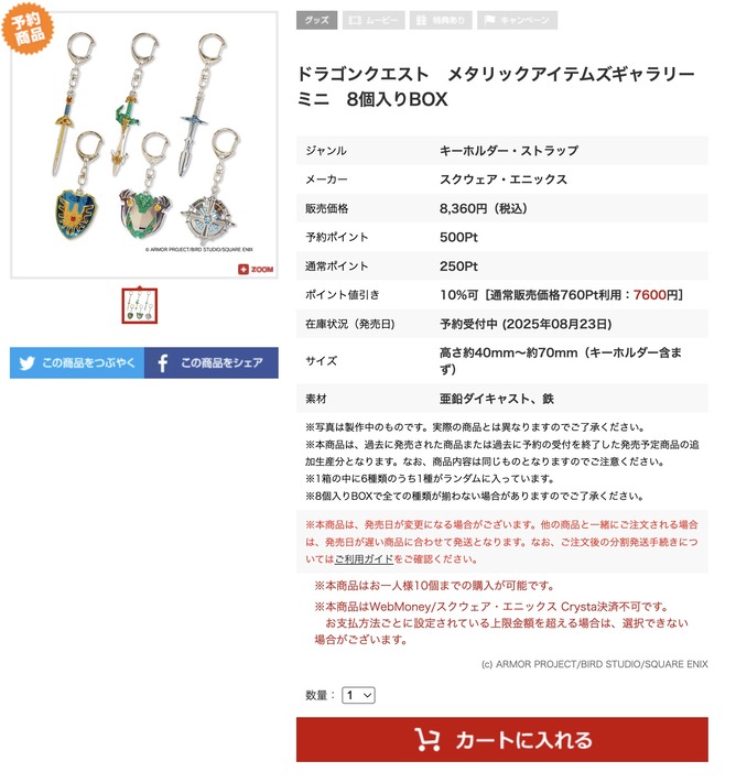 ドラゴンクエスト メタリックアイテムズギャラリー ミニ 8個入りBOX | スクウェア・エニックス e-STORE