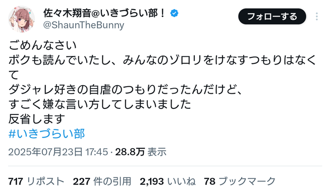 残念、全滅~!#いきづらい部— 佐々木翔音@いきづらい部! (@ShaunTheBunny) July 22, 2025