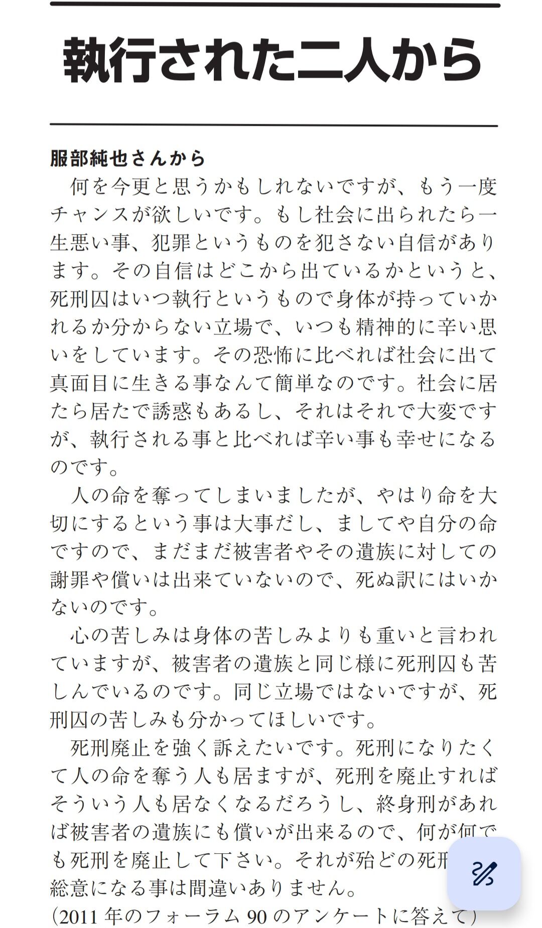 【悲報】死刑囚「被害者の遺族と同じく死刑囚も苦しんでる。何がなんでも死刑は廃止してください」 2025/7/25 哲学ニュースnwk 1: それでも動く名無し 2025/07/25(金) 12:52:03.47 ID:NRY0URl70 https://forum90.net/app/webroot/shcnl/news/forum90/pdf/forum_125.pdf 続きを読む Source: 哲学ニュースnwk