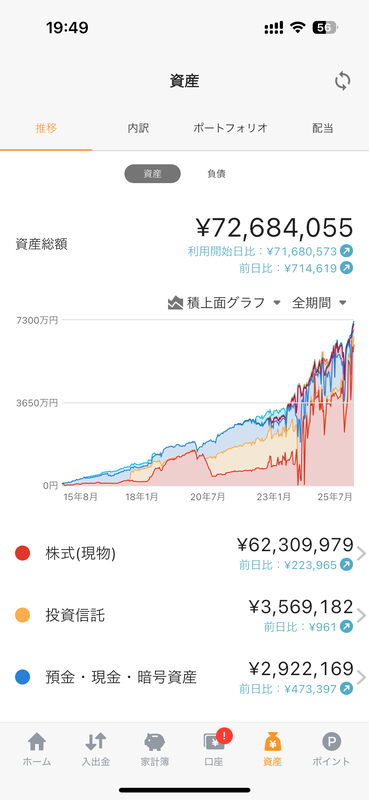 【速報】俺氏、資産が約7300万円に到達する (画像あり) 2025/7/26 暇人\^o^/速報 1: 以下、5ちゃんねるからVIPがお送りします 2025/07/25(金) 19:50:27.383 ID:8N+D+j1a0 寝て起きるだけで資産が増えていく 8: 以下、5ちゃんねるからVIPがお送りします 2025/07/25(金) 19:53:57.216 ID:un8d3s+h0 一生安泰ではないけど何もせずに 日々が過ぎても不安を感じない額だな 続きを読む Source: 暇人\^o^/速報