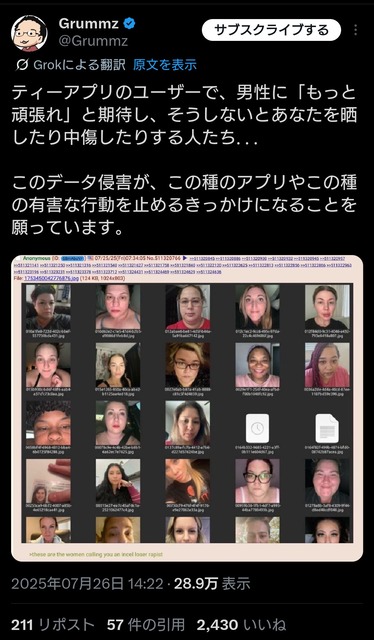 住所や顔写真、ID画像も晒され祭りになっている模様