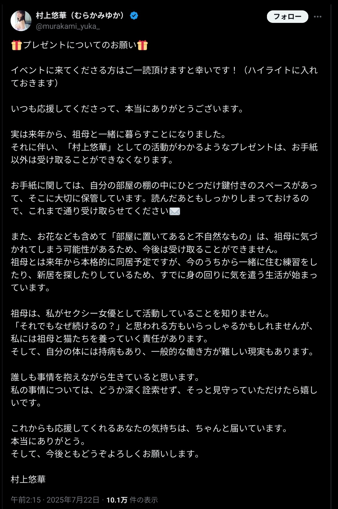 — 村上悠華(むらかみゆか) (@murakami_yuka_) July 7, 2025