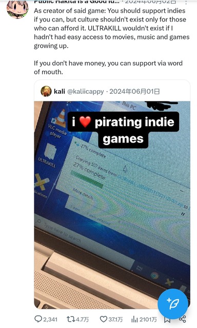 「インディーゲームを違法ダウンロードするの大好き♡」