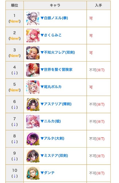 【画像】白猫プロジェクト、インフレ極まって限定コラボキャラで上位を占めてしまうwww