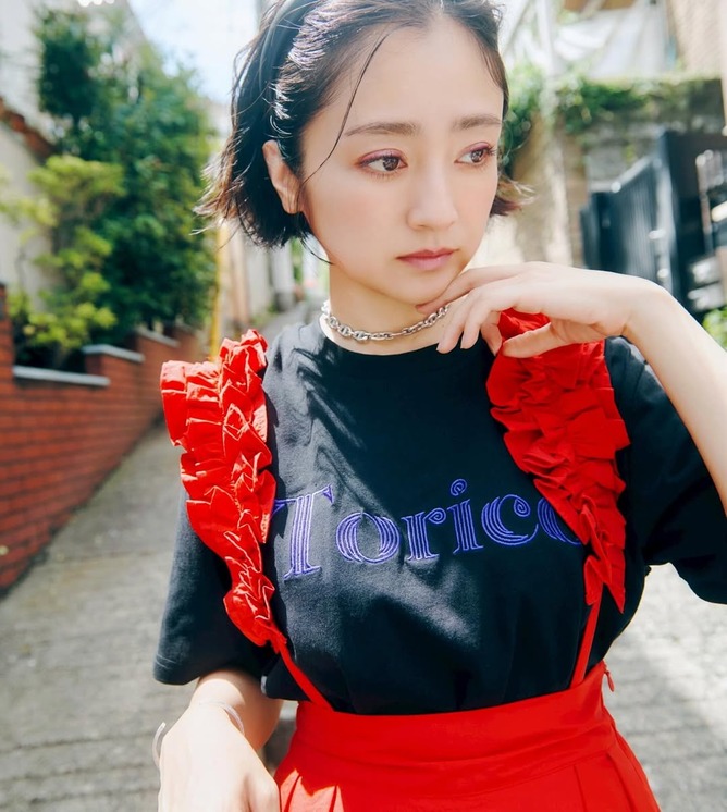 プロデュースするファッションブランド「虜(Torico)」の新作を取り入れたコーデの投稿を続けていた安達さん。この日は「夏の新作これがラスト!」といい、夏らしいノースリーブ姿を投稿。また、「チュールドレス、タンクトップ、フリルのパンツ、ピアス!」とコメントを添えていた。