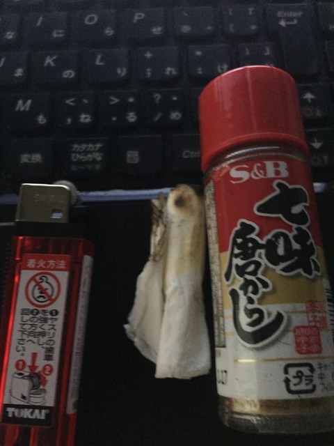 でも外に買いに行くのは止まったけどなんとか吸いたくなってティッシュと七味唐辛子で七味唐辛子タバコを作ろうと思って