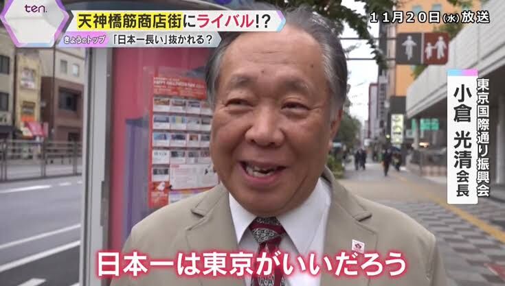【画像】東京の商店街「日本一の長さを大阪に負けてるの気に食わんな…せや!」→ 2025/8/11 不思議.net 1: それでも動く名無し 2025/08/10(日) 15:44:42.11 ID:kqZsZc2L0 BE:253542839-2BP(1000) ただの道路を商店街ということにして 大阪の天神橋筋商店街(2.6km)を超える日本一の商店街とか言い出す かつての日本一 大阪 新しい日本一 東京 続きを読む Source: 不思議.net
