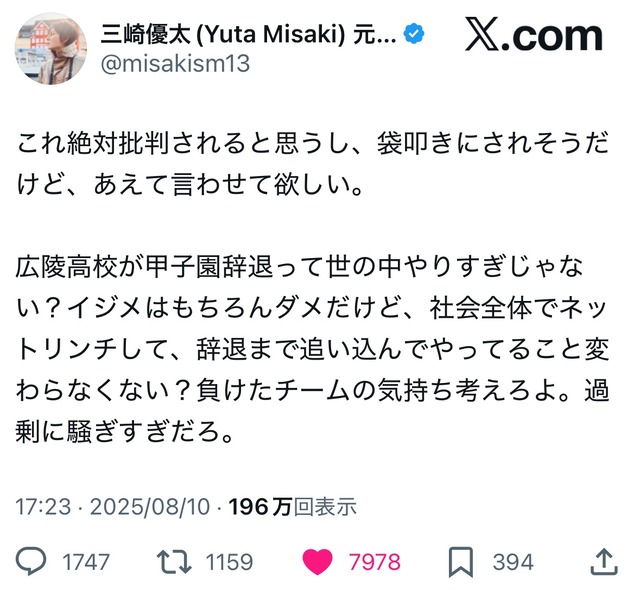 「甲子園辞退に追い込むまでSNSの私刑によるキャンセルカルチャーが行われた」