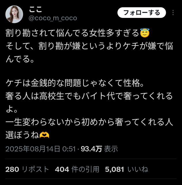 男のほうがいっぱい食べるんやから女が損してることに気づけよ