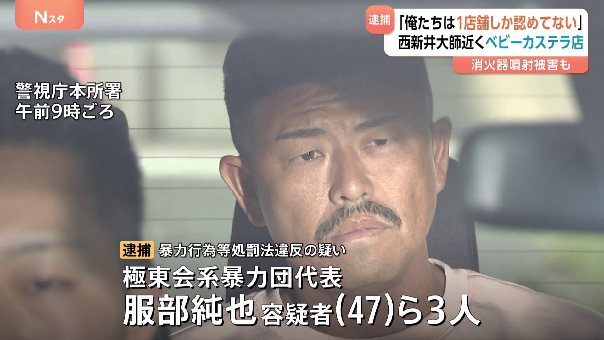 「俺たちは1店舗しか認めてないから」西新井大師近くの駐車場でベビーカステラの店主を脅迫か 暴力団幹部ら3人を逮捕 警視庁(TBS NEWS DIG Powered by JNN) – Yahoo!ニュース「俺たちは西新井でベビーカステラは1店舗しか認めてない」などと言って、東京の西新井大師近くでベビーカステラを売っていた店主を脅したとして、暴力団幹部の男ら3人が逮捕されました。極東会系暴力団代表の服部純也容疑者(47)ら3人は、今年1月2日、東京・足立区にある西新井大師近くの駐車場で、キッチンカーでベビーカステラを販売していた店主の男性に対し、「俺たちは西新井でベビーカステラは1店舗しか認めてないから」「あすもここで商売をしてたら店をぶち壊すから」などと言って、脅した疑いがもたれています。全文はこちら