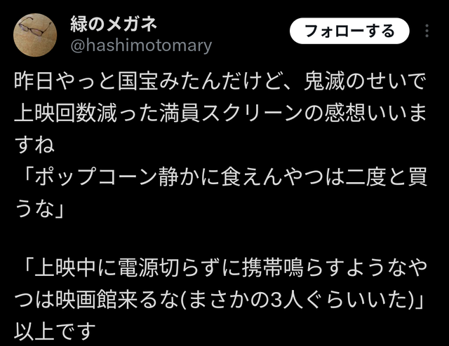 【異例】映画館が「観客のマナー違反」で謝罪…居合わせた観客が詳細を証言https://t.co/Vg8NRYO2uW