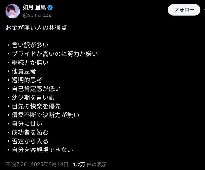 ・自分を客観視できない— 如月 星凪 (@seina_zzz) August 14, 2025