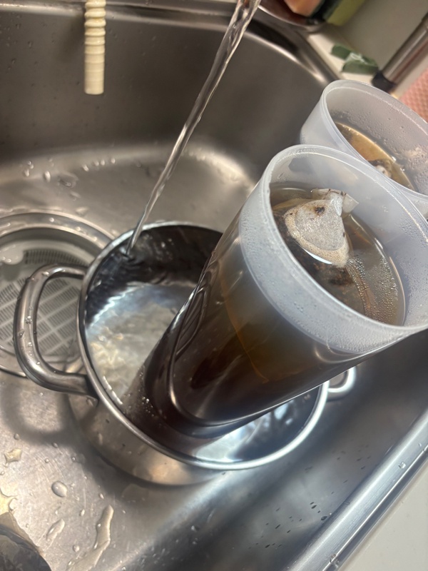 沸いたお茶冷やしてるけど全然冷えひんで…