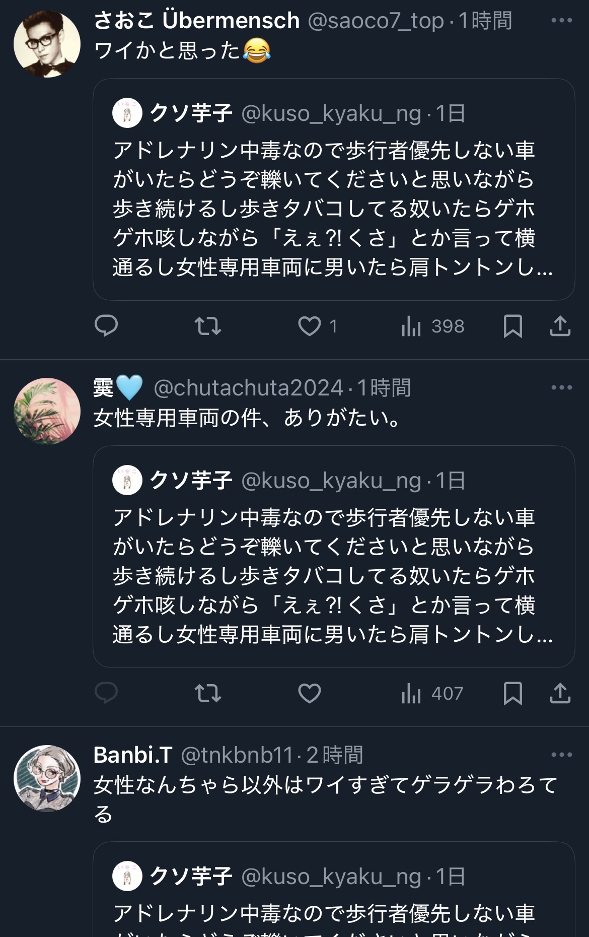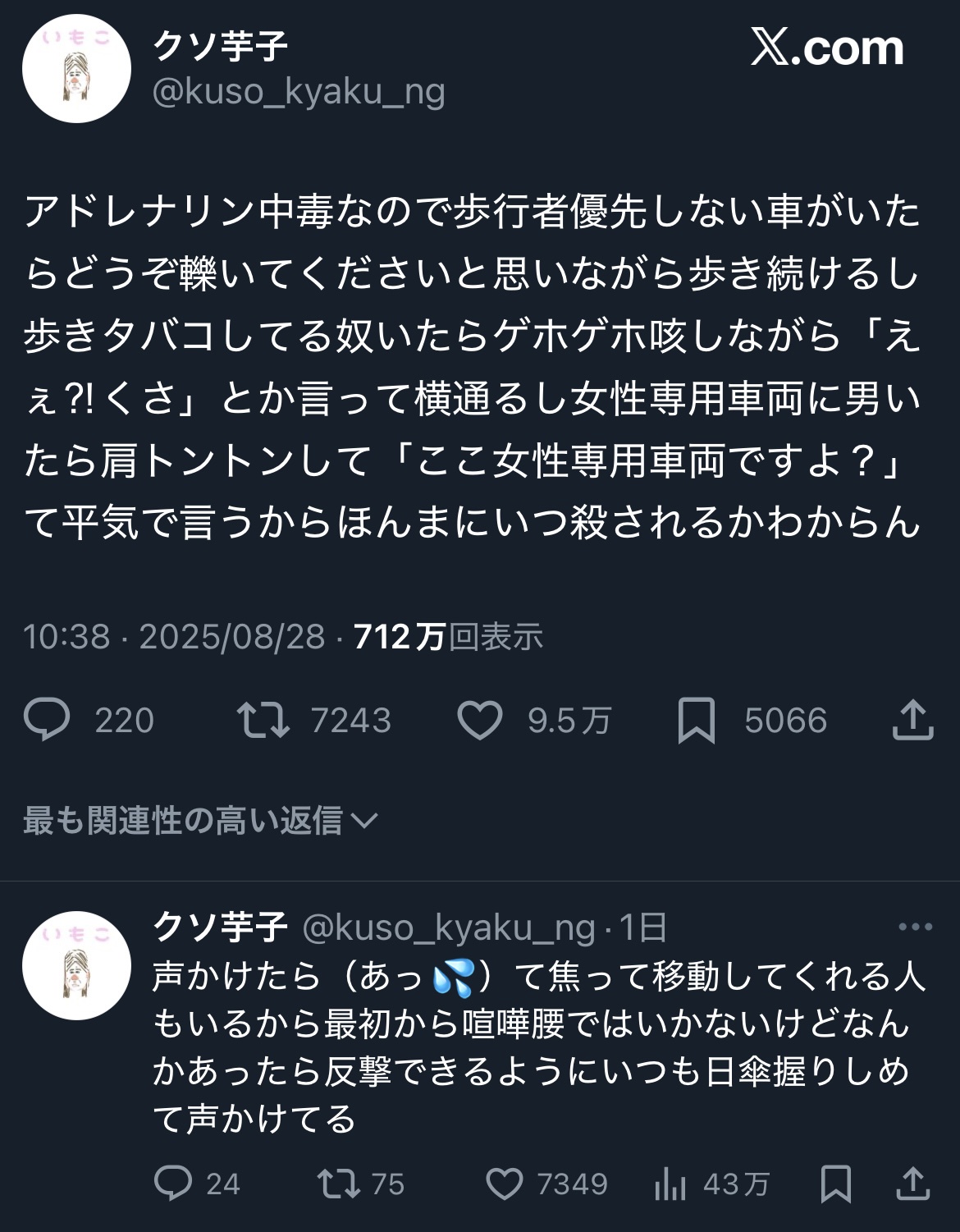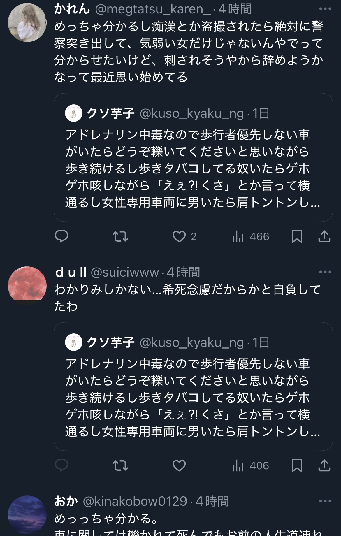 無謀なことしてる女たまにいるけどこの世の全てを憎んでそうな顔して歩いてるよな