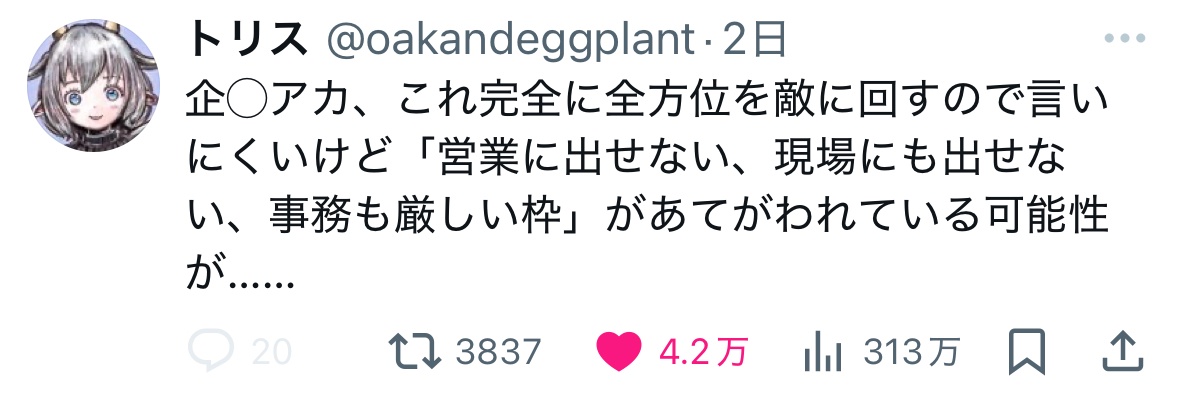 企業垢で公私混同しすぎですね。 https://t.co/8zE948RYYO— 春風 (@E2FSkwz6Rg38690) August 15, 2025