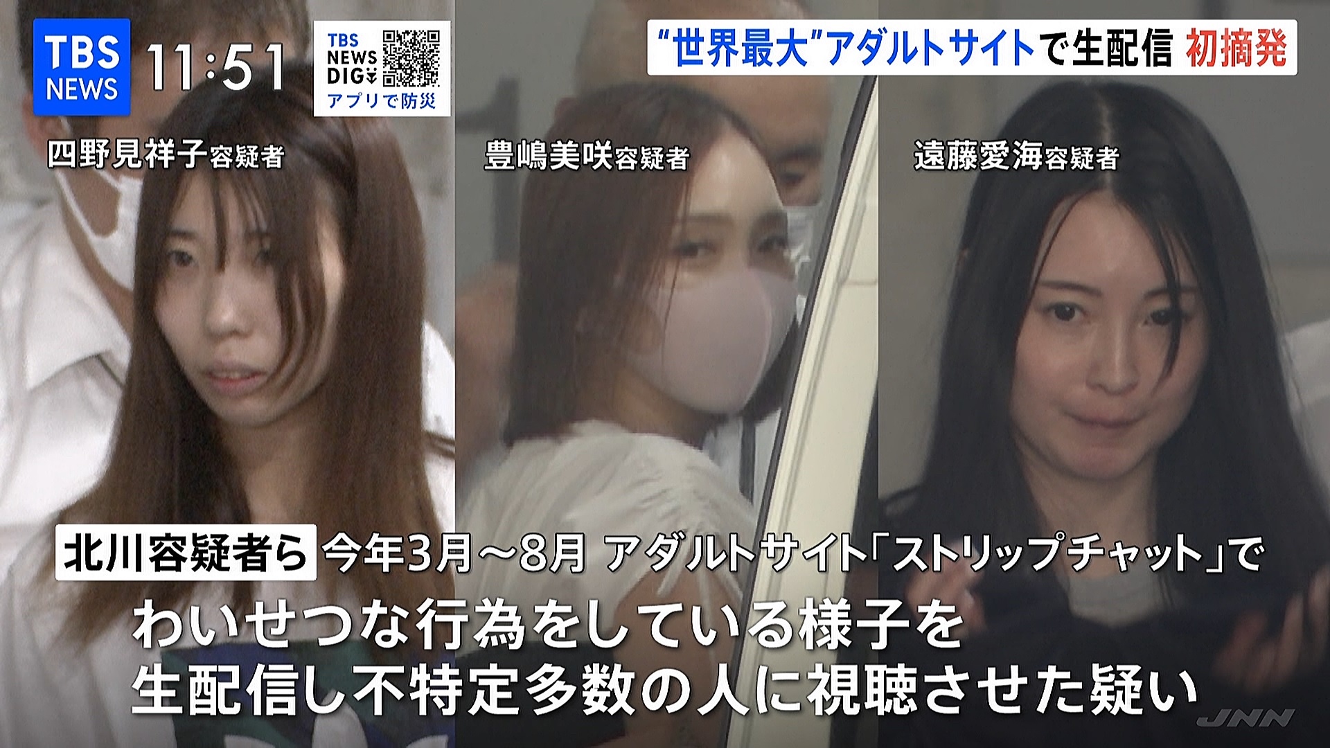 いずれも容疑を認めている。同課によると、ストリップチャットは生配信に特化したアダルトサイトで、月間のアクセス者数は7億人を超えるとされる。近年、日本人配信者が増えているとみられ、無修正のわいせつ動画も散見されるという。