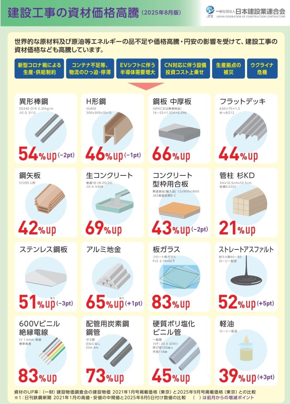 建材価格が大暴騰で建設業に危機…板ガラス83%上昇、H型鉄骨46%、生コン69% 2025/9/6 哲学ニュースnwk 1: トラースキック(東京都) [CN] 2025/09/06(土) 10:51:24.54 ID:KXSQKZ930● BE:237216734-2BP(3000) https://www.nikkenren.com/sougou/notice/index.html 続きを読む Source: 哲学ニュースnwk