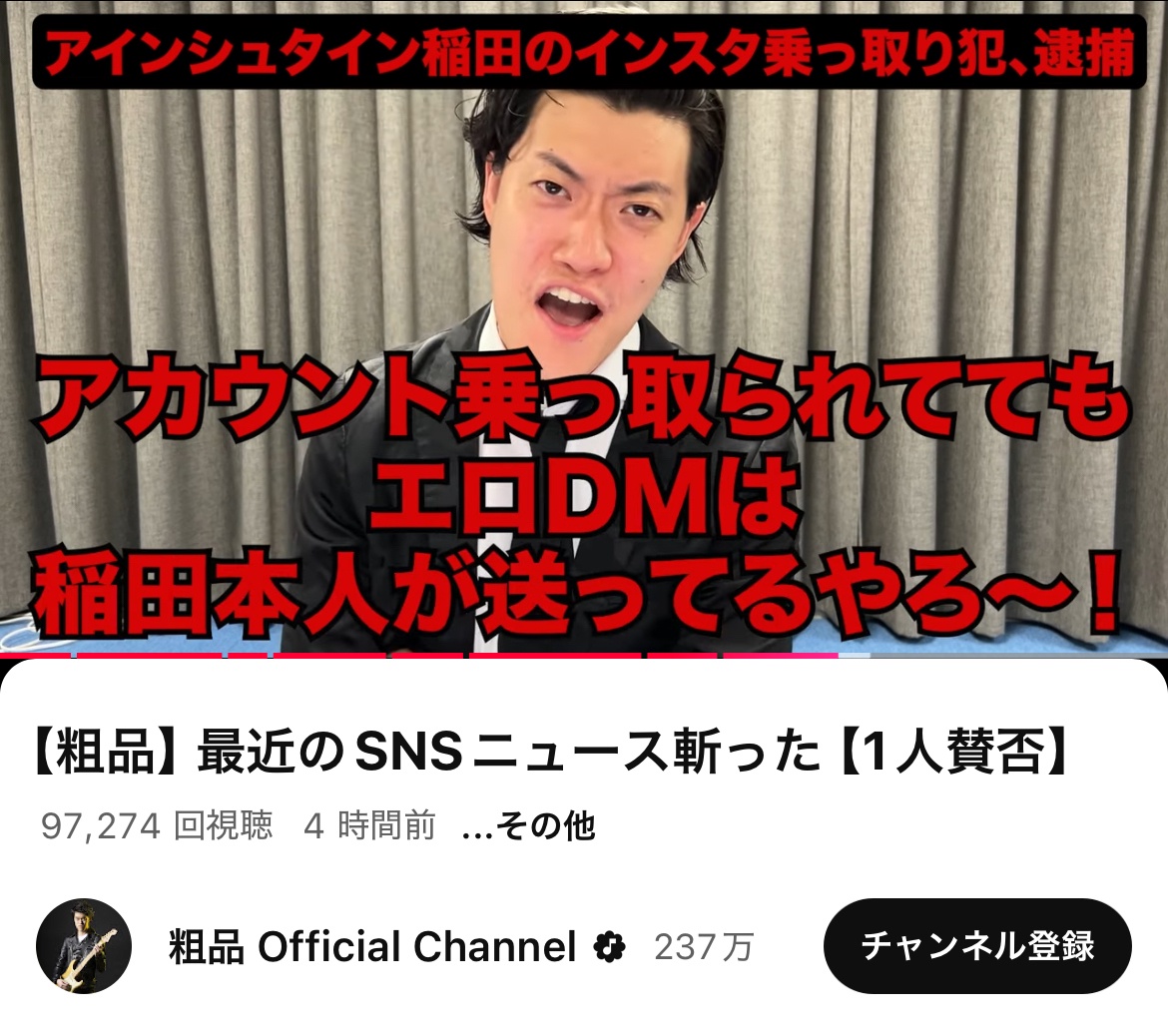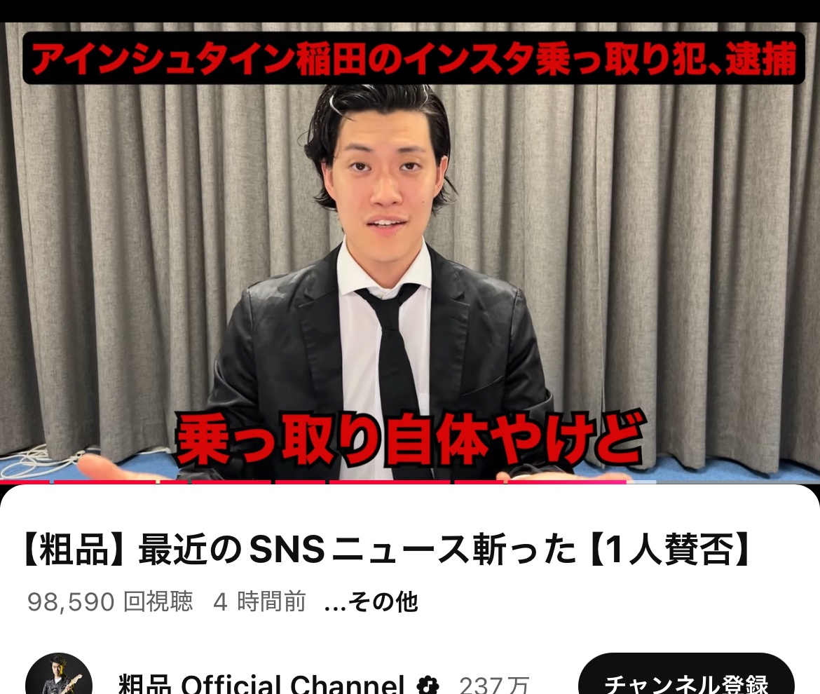粗品は本人と会って確認したとか言ってネタにしてるんだけど、どうなんやろね
