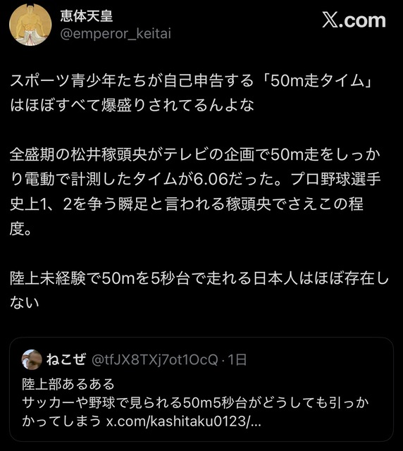 でも実際未経験で6.06の奴がいるんだから未経験で5秒台はあり得ないってほどではないやろ