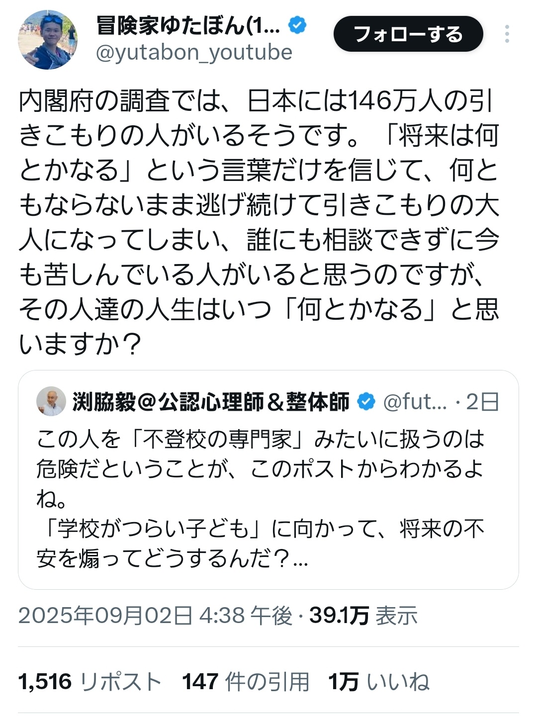 — 渕脇毅@公認心理師&整体師 (@futtii) August 31, 2025