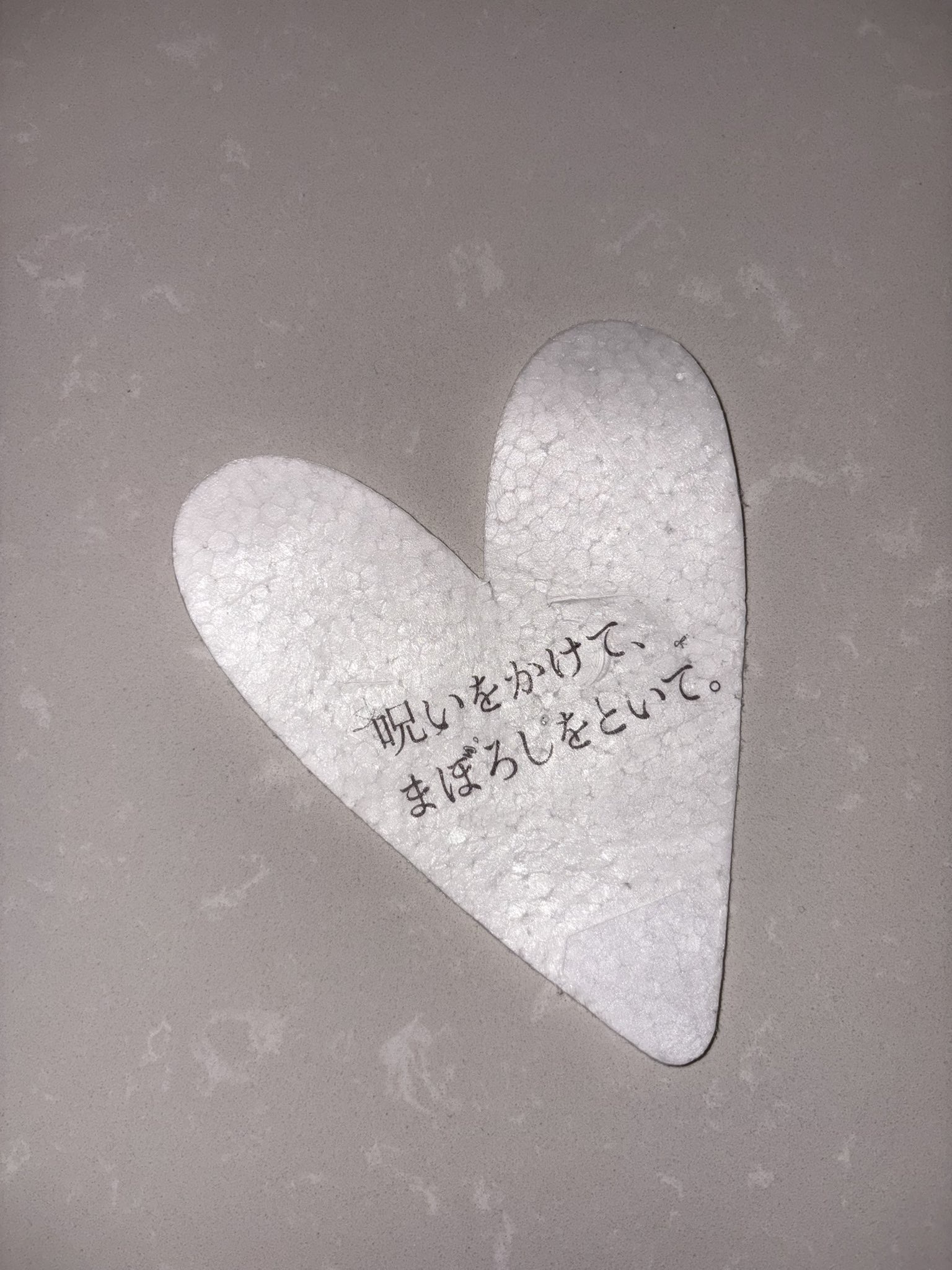 薄い発泡ポリスチレンで作られたハートにプリントされたのは、SNSに書き込まれたanoへのアンチコメント。
