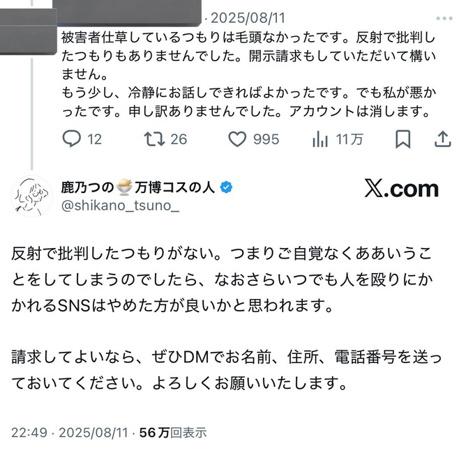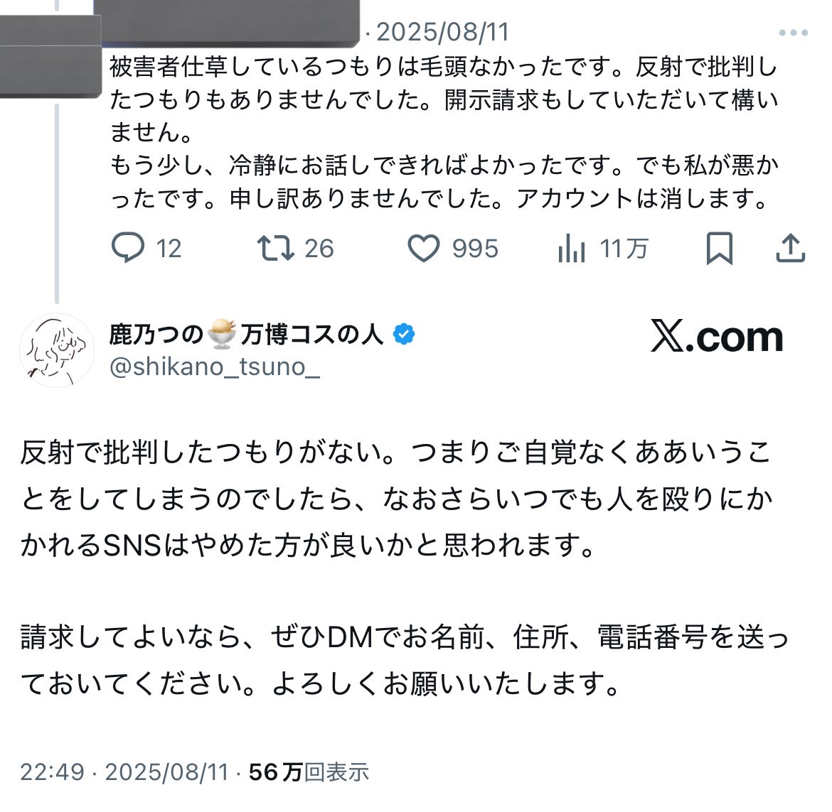 インフルエンサー「名前、住所、電話番号をDMで送れ」