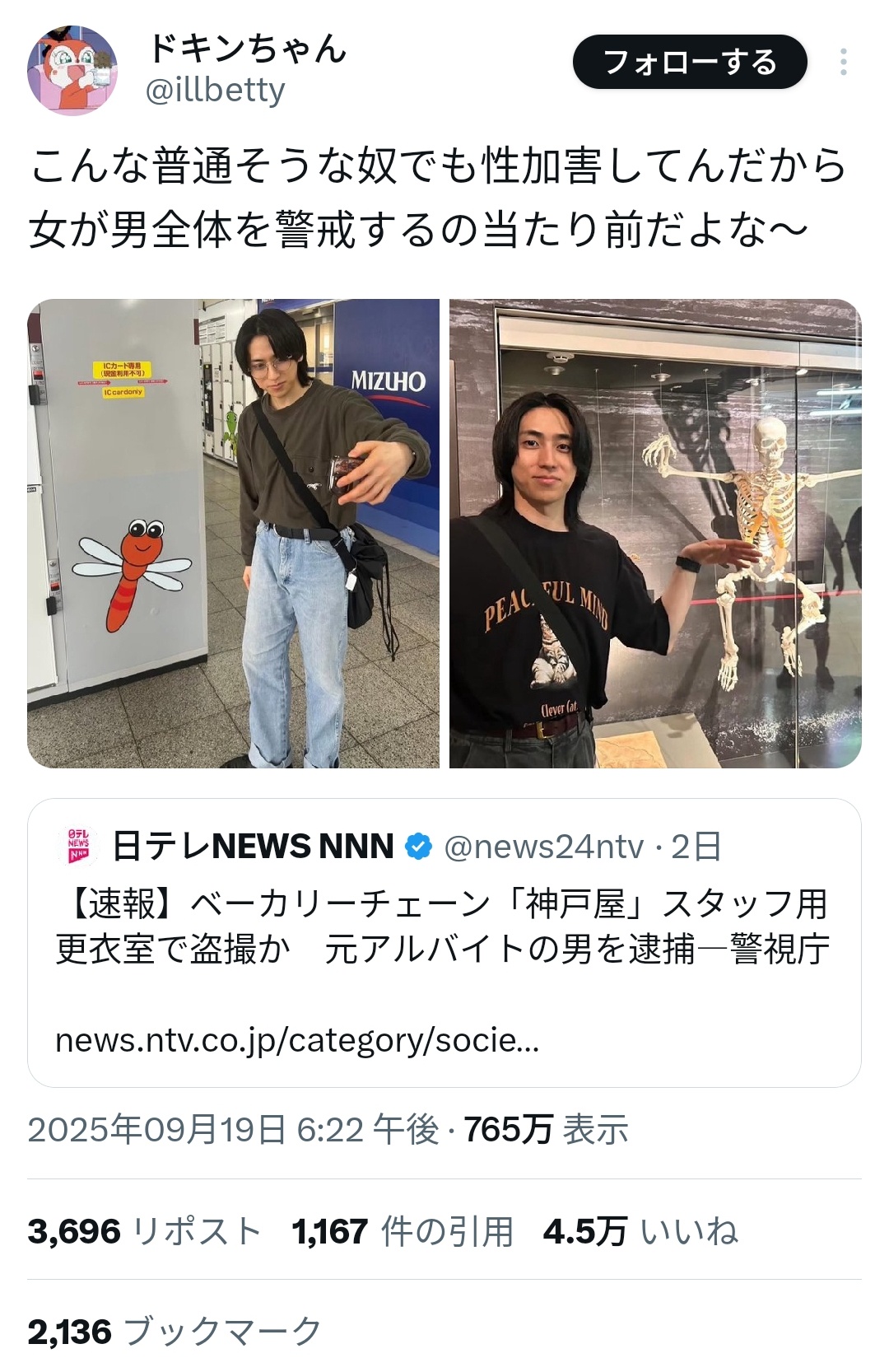 こんな普通そうな奴でも性加害してんだから女が男全体を警戒するの当たり前だよな〜 https://t.co/qBA7UDPcXD pic.twitter.com/YPySMujowP