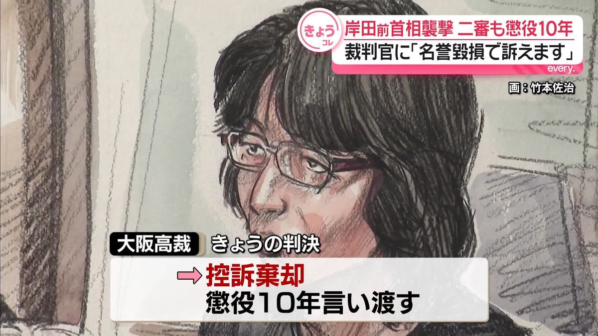 岸田前首相を襲撃した被告の控訴審判決で、懲役10年とし被告側の控訴を棄却。判決読み上げ後に被告は、裁判長に「裏金をもらって判決を書いたんですか」と訴え、「裁判官を名誉毀損で訴えます」と発言した。 pic.twitter.com/NI4T2rTxZA