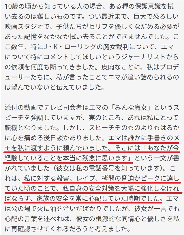 エマ・ワトソンが支援していた団体がなんか問題あるらしくてエマが立場悪くなってきてJKに擦り寄ろうとしてきてる