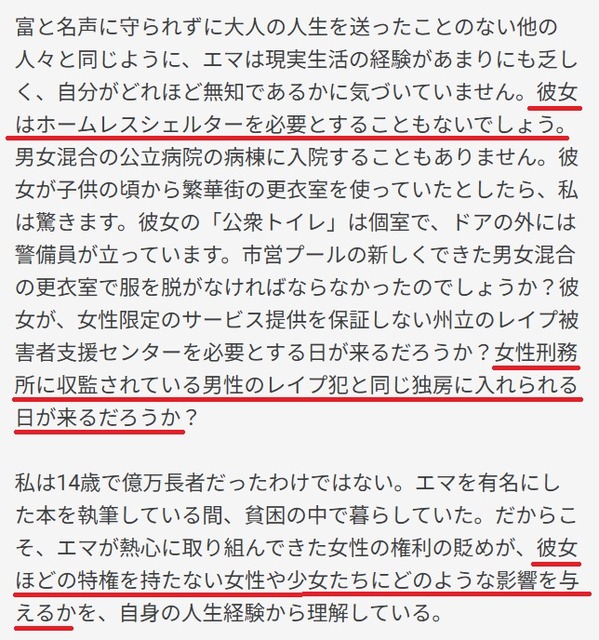 生活保護受けてたJKRと違ってエマワトソンなんて家もクソ金持ちやろしな