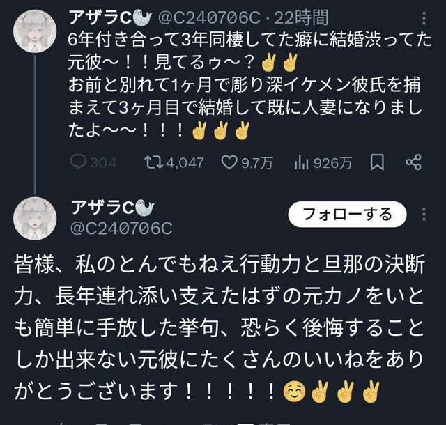6年同棲した相手ならそら嫌いきれん程度には情は残ってるやろ
