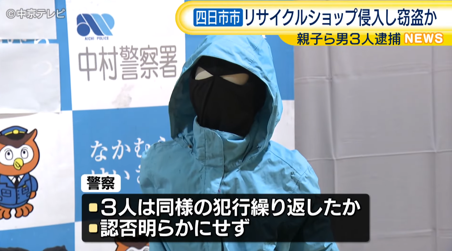 警察によりますと、3人は、2025年7月5日未明、四日市市にあるリサイクルショップに出入り口のドアガラスを割って侵入し、フィギュア2点、販売価格1万1460円相当を盗んだ疑いが持たれています。