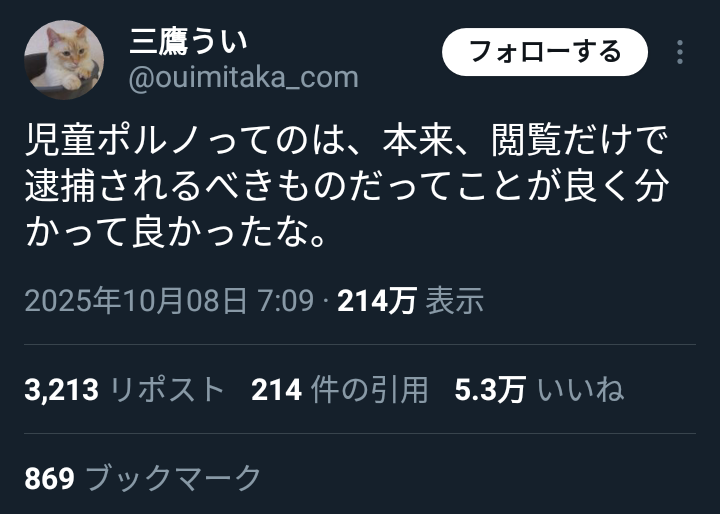 【悲報】女さん「児童ポ●ノは閲覧だけで捕まって当然!!」→